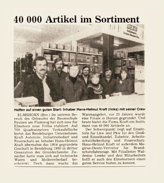 Das Sortiment der Kraft GmbH hat sich in all den Jahren an den Kunden orientiert: Waren es zunächst Öle, Fette und Molkereibedarf, die die Produktpalette bestimmten, kamen später Teile für andere Bereiche, wie zum Beispiel die Feuerwehr, hinzu.